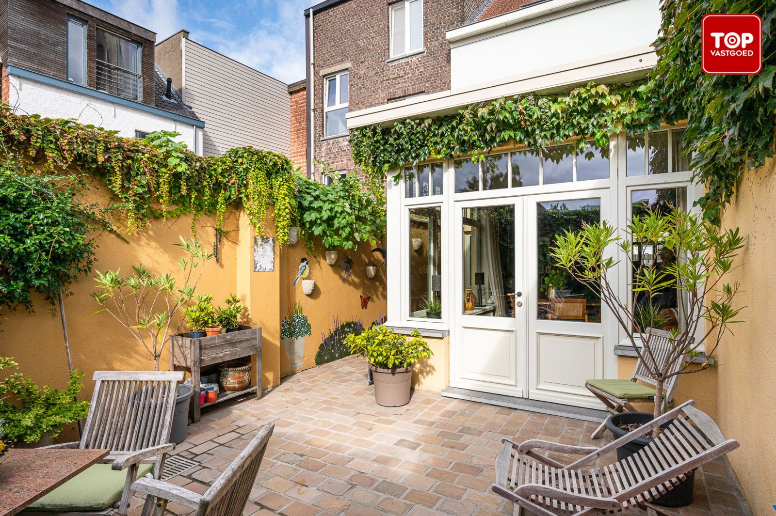 De woning beschikt over drie volwaardige slaapkamers, één dressing met wasruimte, twee badkamers en een ruime, lichtrijke leefruimte. De moderne keuken met eiland vormt het hart van de woning en sluit mooi aan op de gezellige, onderhoudsvriendelijke stadstuin zonder inkijk.