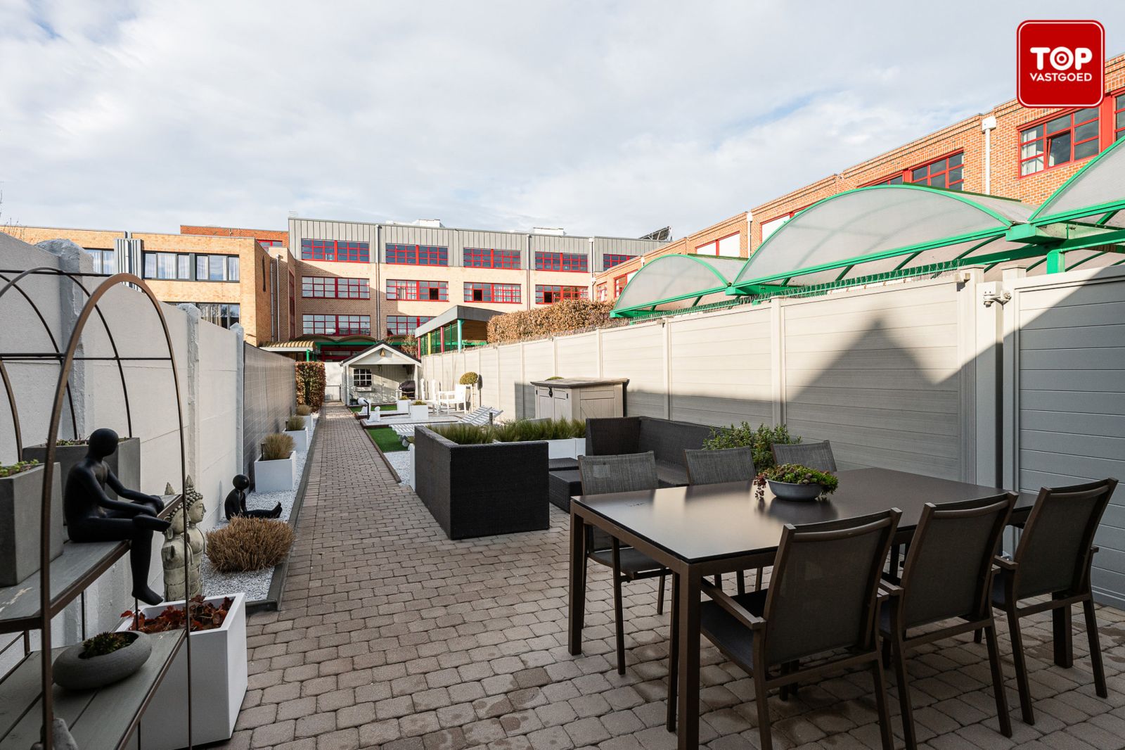 Een extra troef zijn de twee erfdienstbaarheidswegjes die toegang geven tot de zijkant en de achterkant van de tuin, bijzonder praktisch voor fietsen en tuinonderhoud .